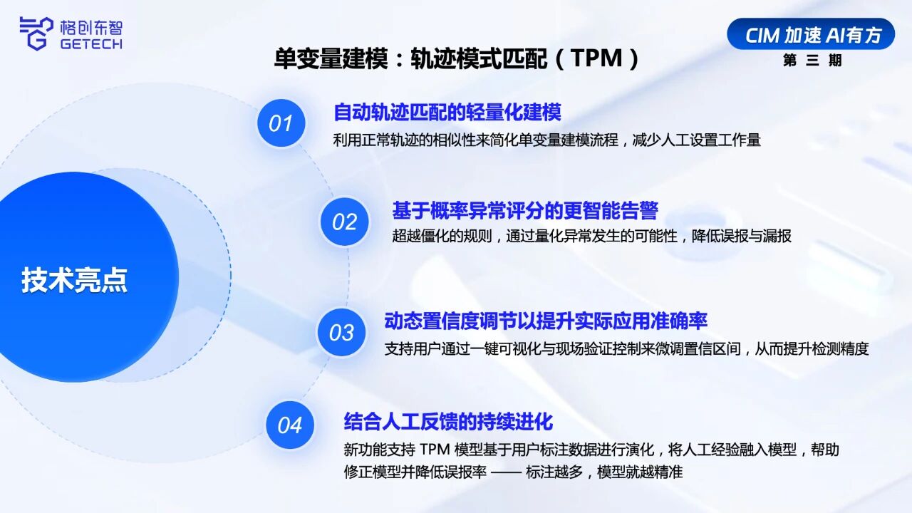 TPM no longer relies on manually set monitoring windows but automatically learns the full-process parameter trajectories of normal wafer processing, calculating 'anomaly probability' through pattern matching, significantly reducing the false positive rate of single-variable monitoring while supporting users to fine-tune confidence intervals via a visual interface and perform online self-learning based on operational feedback.