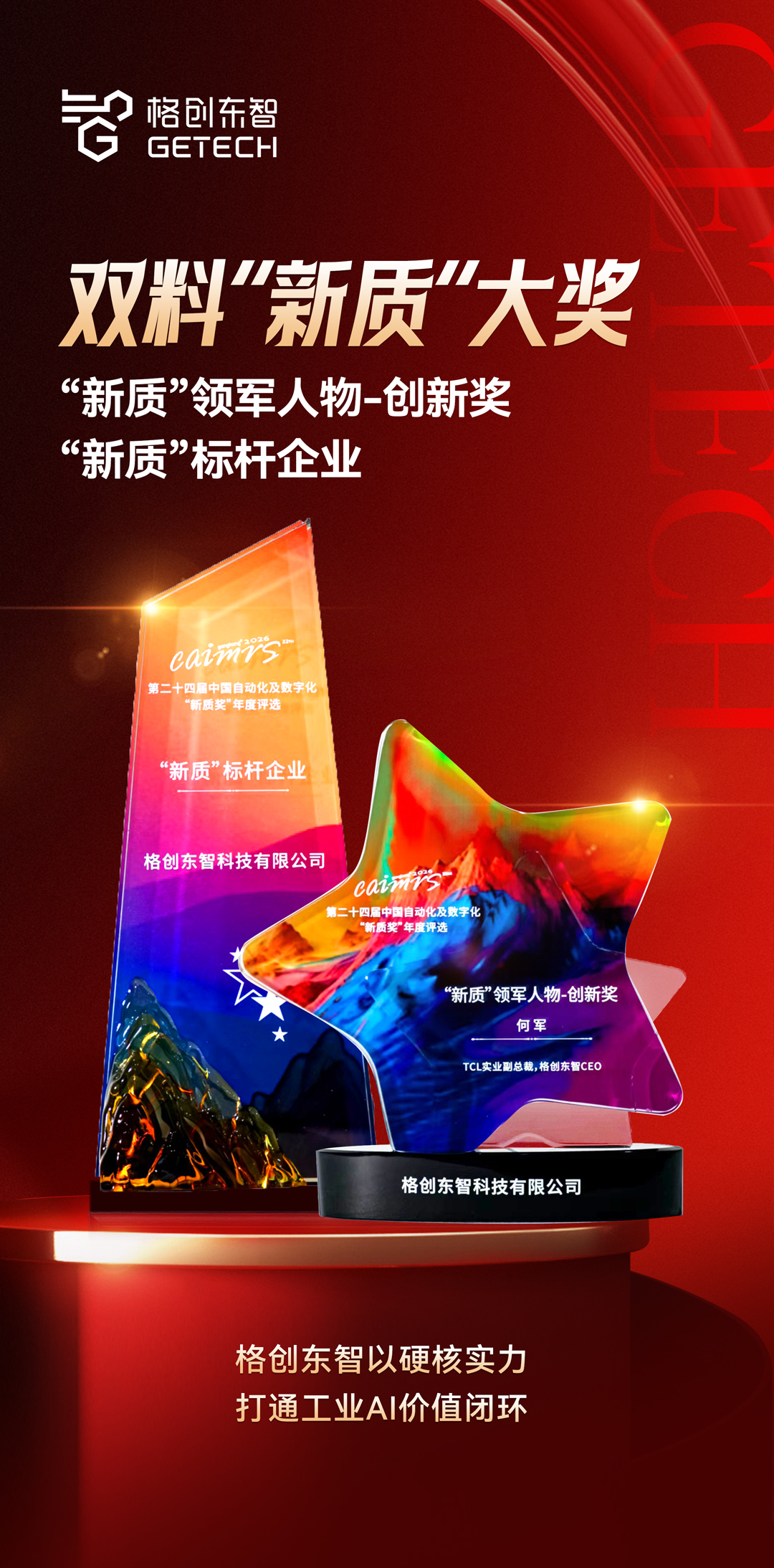 On March 20, at the '2026 China Automation + Digitalization Industry Annual Conference' hosted by China Industrial Control Network, Gtrontec won both the 'New Quality' Leader-Innovation Award and the 'New Quality' Benchmark Enterprise Award for its continuous innovation leadership and excellent industrial empowerment in the field of industrial AI. This marks the industry's high recognition of Gtrontec as a leader in industrial AI, continuously promoting industrial technological innovation and leading the high-quality development of China's intelligent manufacturing.