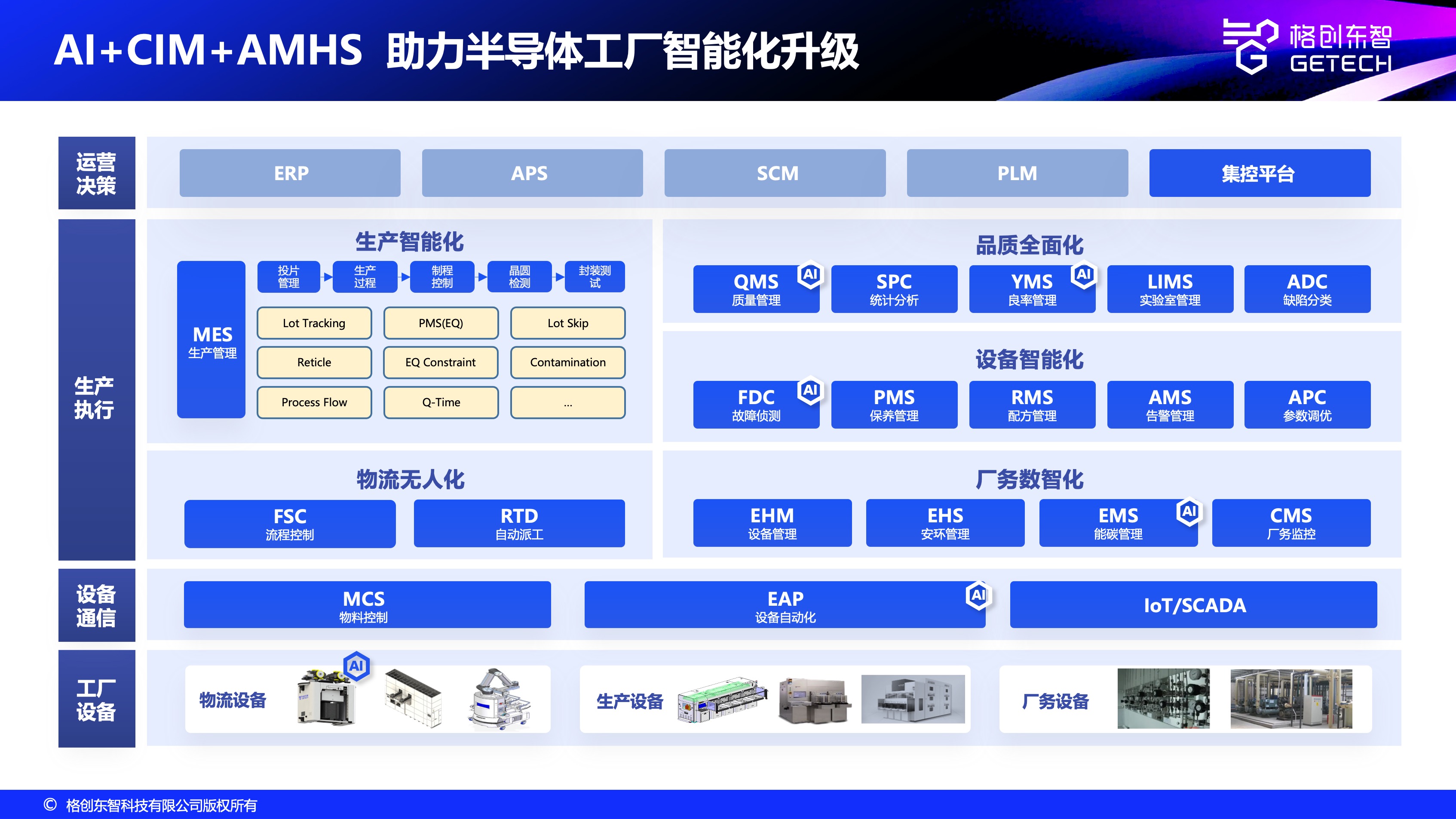 格创东智是业内唯一一家能同时提供“AI+CIM+AMHS”软硬一体解决方案的公司,可深度融合CIM系统与AMHS自动物料搬运系统,实现物料路径动态优化、供需智能调度,减少人工干预,助力先进封装工厂从半自动化向全自动化高效转型。