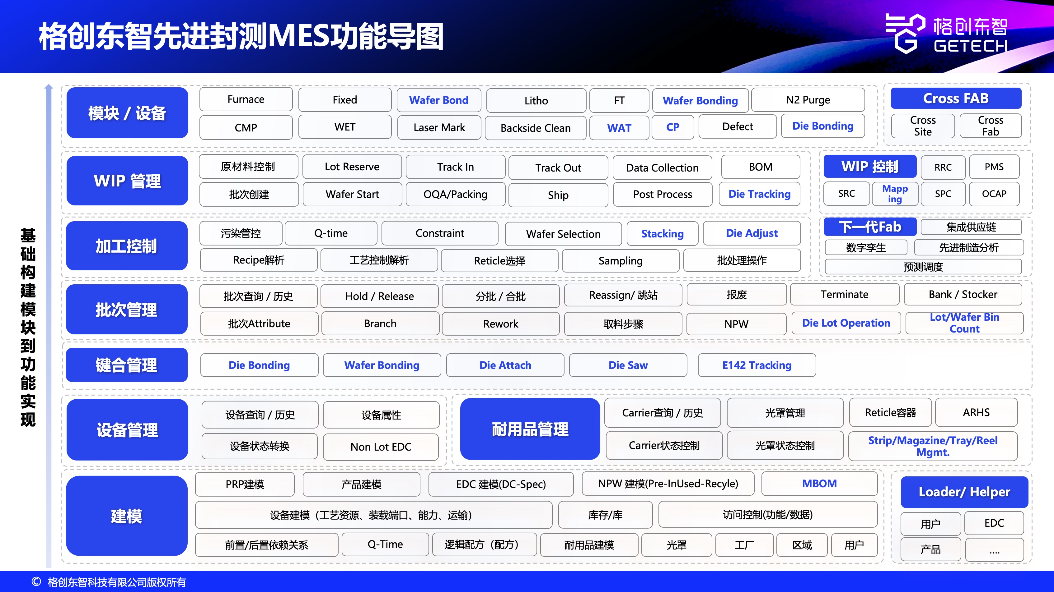 作为CIM系统的指挥中枢,G-MES针对先进封测的特殊性提供以下关键能力:
